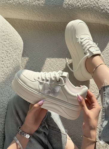کتونی سفید لژدار پاپیونی سفید جنس وارداتی