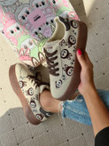 کفش کتانی دخترانه مدل کلاسیک رترو - ترکیب رنگ کرم و قهوهای