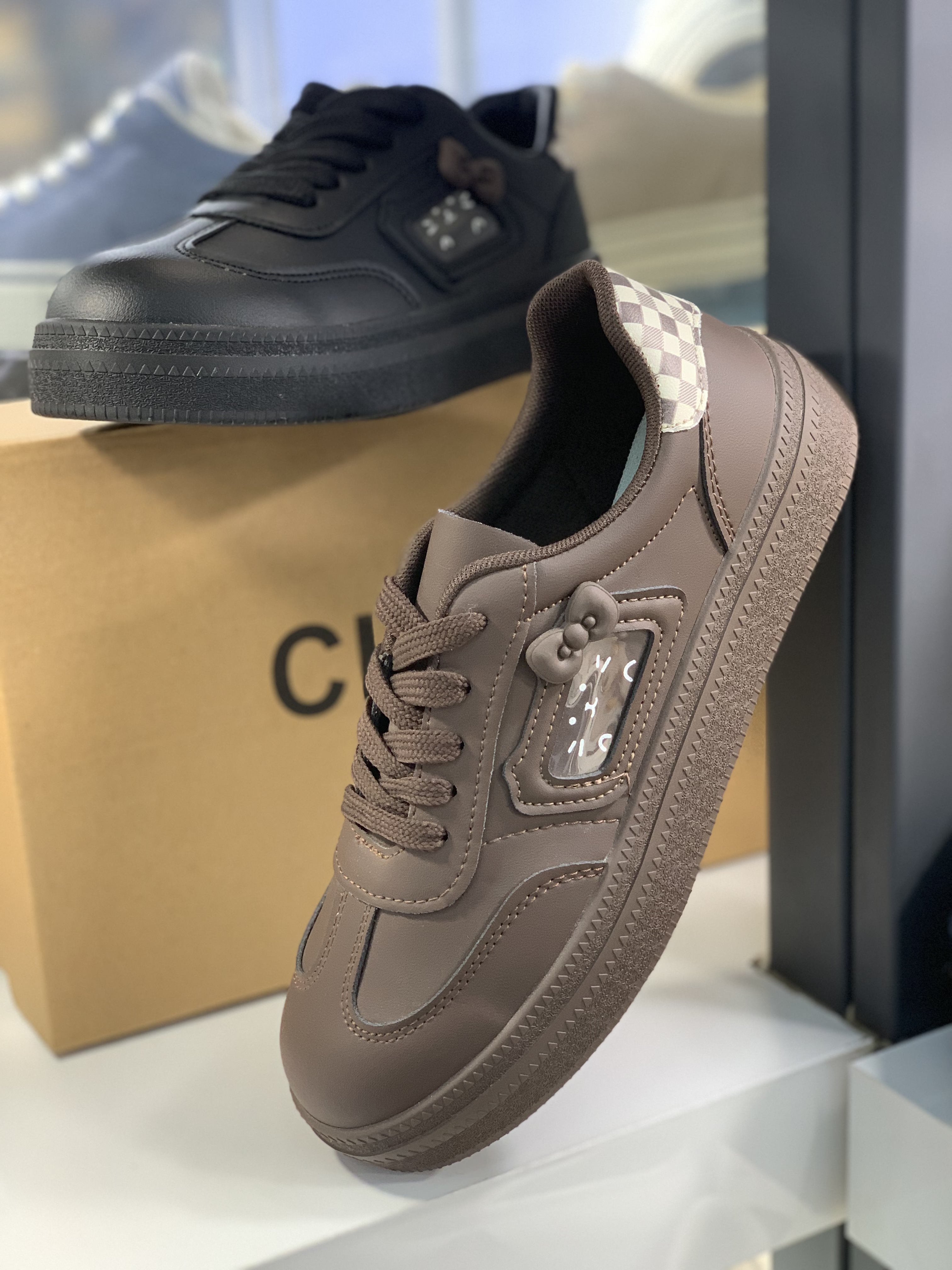 کفش کتانی دخترانه مدل کلاسیک رترو - ترکیب رنگ کرم و قهوهای